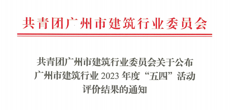 近日,廣州市建筑行業(yè)委員會舉辦廣州市建筑行業(yè)2023年度“五四”評選活動,對企業(yè)團(tuán)組織、團(tuán)員、團(tuán)干部等日常團(tuán)務(wù)管理工作進(jìn)行考察評定。公司積極申報,經(jīng)評審委員會綜合評定和公示,成功評為“廣州市建筑行業(yè)五四紅旗團(tuán)(總...