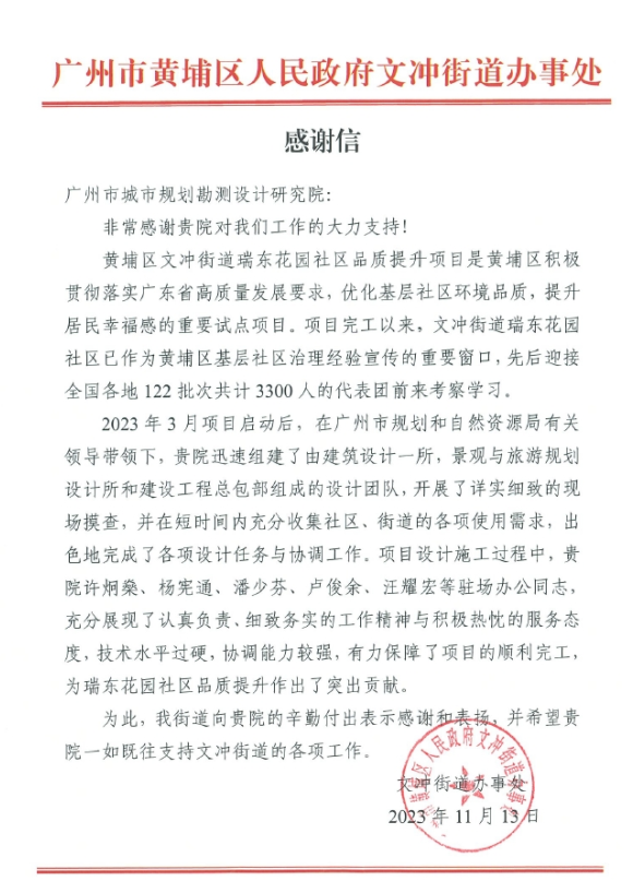 近期,公司陸續(xù)收到多個項(xiàng)目業(yè)主和配合單位發(fā)來的感謝信,黃埔區(qū)文沖街道辦-瑞東花園社區(qū)品質(zhì)提升項(xiàng)目、十六中學(xué)-校本部飯?zhí)酶脑祉?xiàng)目、花都赤坭鎮(zhèn)政府-美麗圩鎮(zhèn)全過程咨詢項(xiàng)目、廣州市公安局打私隊(duì)-廣園中路805號大院室...