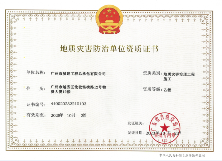 地質災害評估和治理工程勘查設計乙級