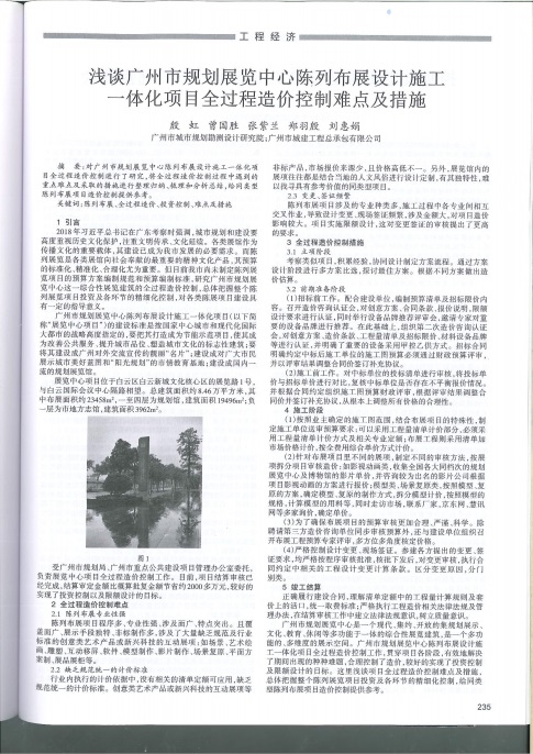 《淺談廣州市規劃展覽中心陳列布展設計施工一體化項目全過程造價控制難點及措施》論文摘要