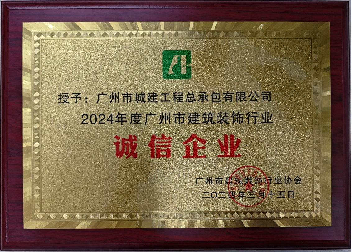 近日,廣州市建筑裝飾行業協會舉辦第二屆“誠信企業”評選活動,對企業依法納稅、合同履約、安全生產、社會誠信等管理工作進行考察評定。公司積極申報,經評審委員會評定、向社會公示等程序,成功復評為“2024年度廣州市建筑裝...